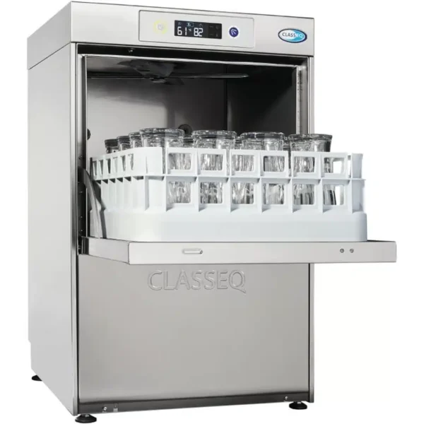 Conveniently compact and designed for reliability, the single phase Classeq G400 Duo WS commercial glasswasher produces consistently great glasswashing results – perfect for smaller pubs, restaurants and cafés. Simple to operate, the Classeq is able to effectively wash and rinse 16 pint glasses per either 2 minute or 90 second cycle (up to 640 glasses per hour) using simple digital controls.