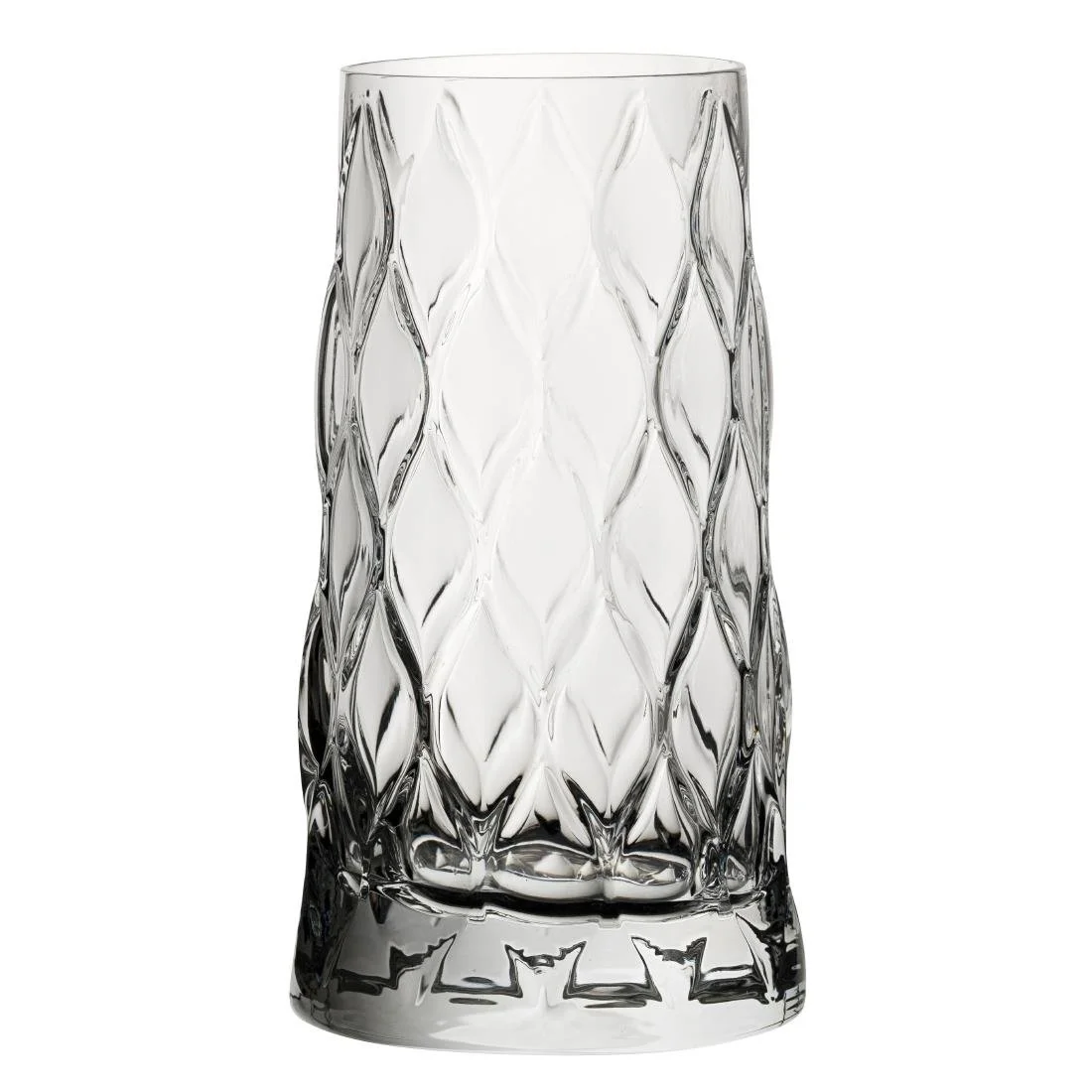 Pasabahce Leafy long drink tumblers bring a modern, stylish feel to drink service with a distinctive textured pattern inspired by nature. Each piece features a geometric, faceted surface that catches the light and adds depth and character to table settings.