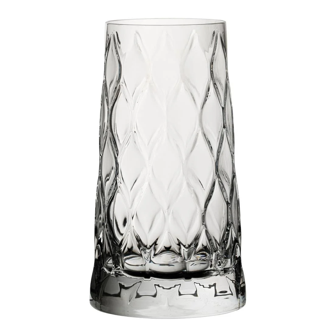 Pasabahce Leafy long drink tumblers bring a modern, stylish feel to drink service with a distinctive textured pattern inspired by nature. Each piece features a geometric, faceted surface that catches the light and adds depth and character to table settings.