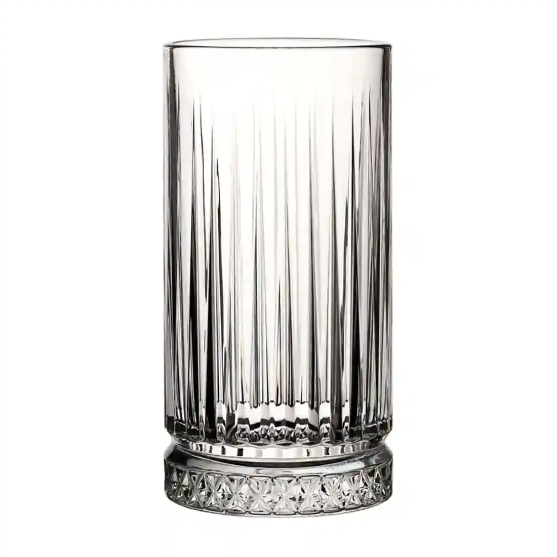 Shimmering with classic style, these Utopia Elysia hiball glasses feature striking vertical cuts and details which evoke brilliant cut diamonds. Manufactured from machine-made glass, the glasses come supplied in a pack of 12.