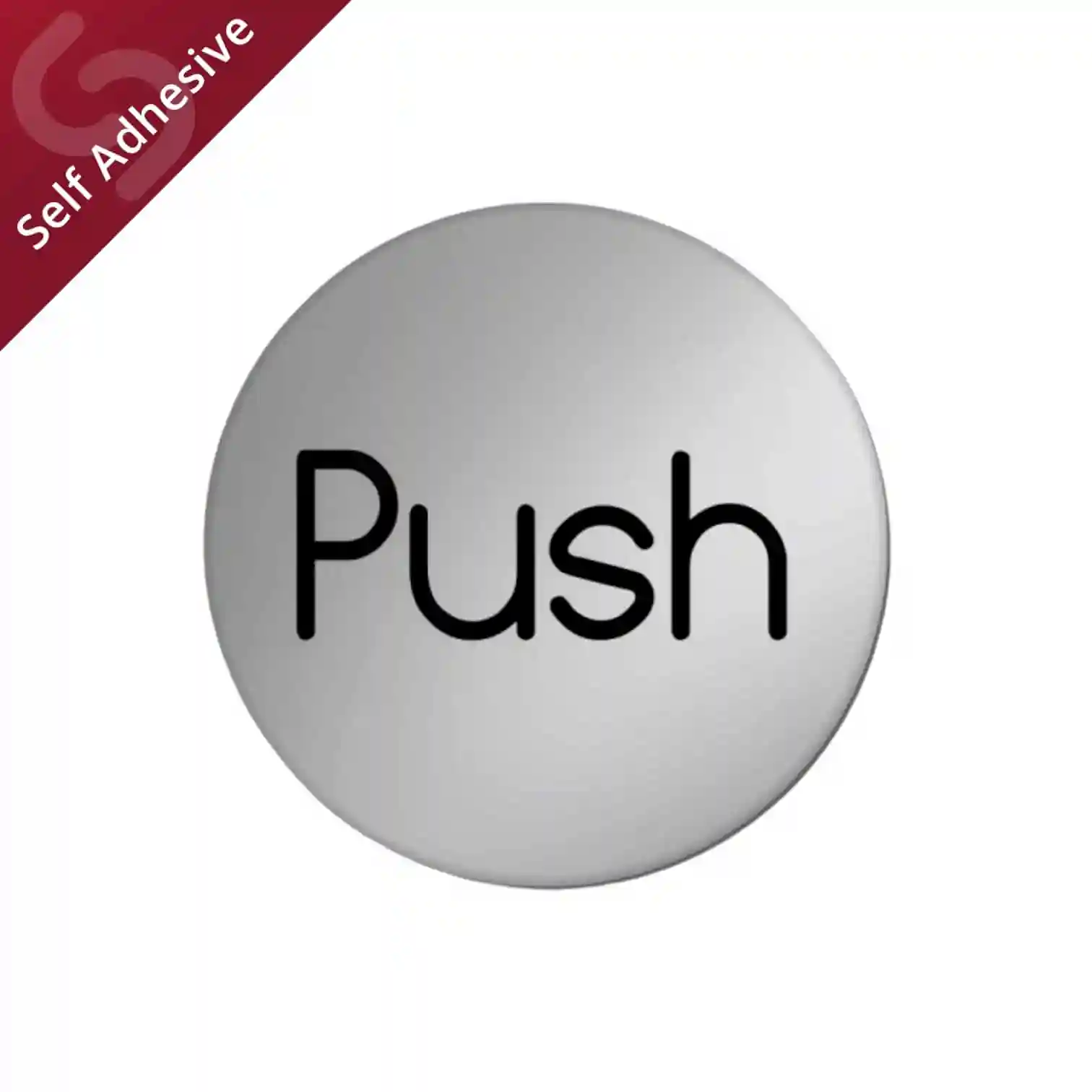 These Push Metal Effect Disc Door Signs indicate that this door should be pushed to open within any commercial environment.