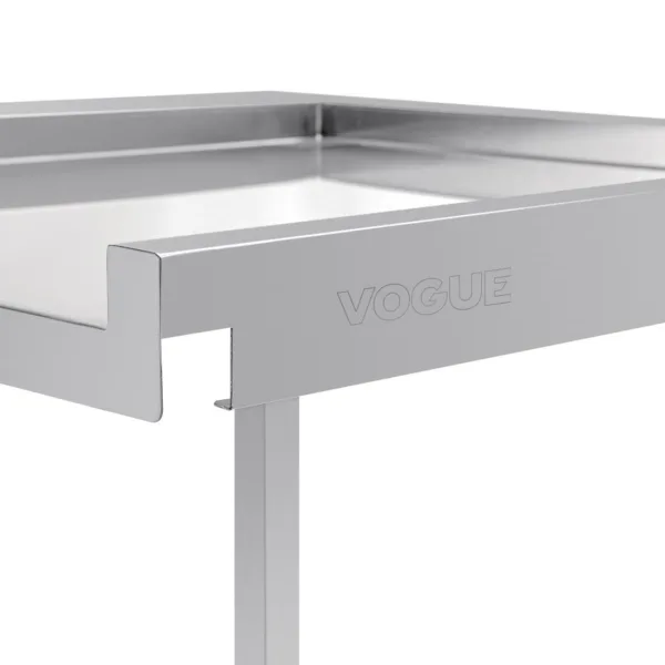 The table is used as an optional extra to most pass through dishwashers and acts as a guard to prevent crockery and glassware from becoming damaged and water from reaching the kitchen floor. Features a raised lip that will stop any dishwashing basket from falling; saving you money on replacement costs and allowing you take your eye off the dishwasher without worry.