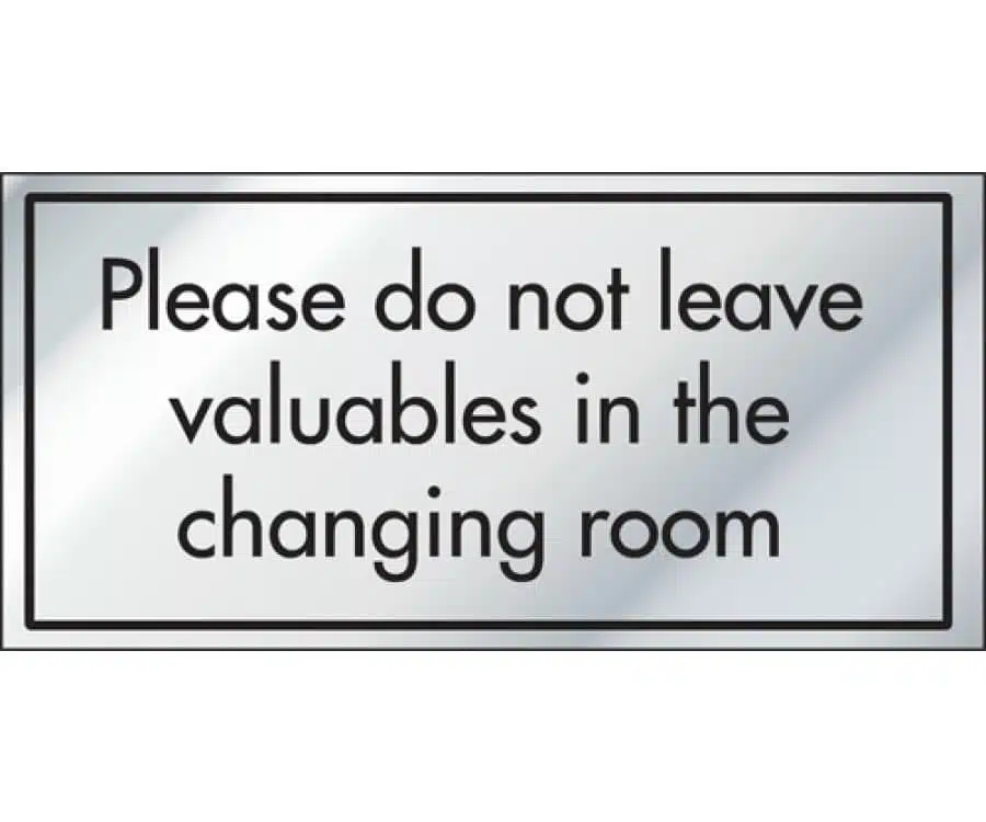 Be sure to inform customers not to leave their valuables in the changing room with this sign.