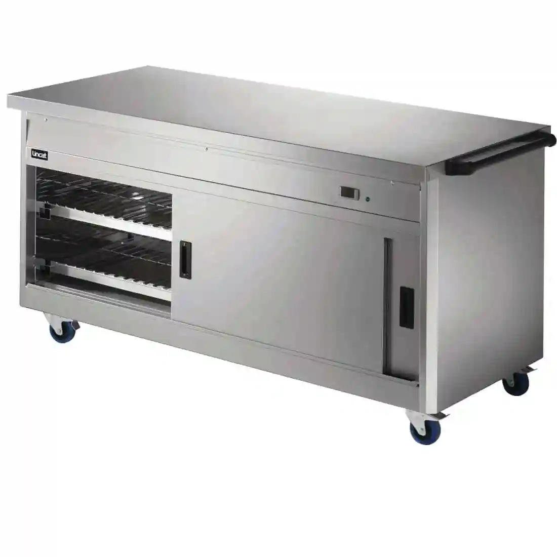 A safe and effective way of holding food at a desired temperature. Maintains the quality and temperature of food. GN 1/1 compatible. Easily removable doors and shelves for easy cleaning. Double skinned construction provides efficient heat retention and a cool to touch exterior. Two chrome shelves and one push bar included with each model.