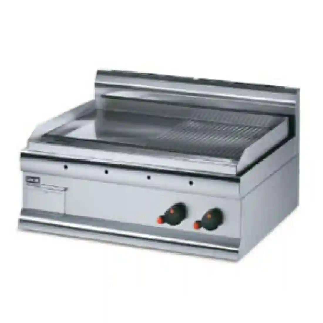 Heavy duty half ribbed griddle by Lincat featuring dual heat zones controlled independently. Thermostatically controlled for consistency and featuring a thick steel plate to retain and distribute heat evenly, the half ribbed feature gives attractive branding marks to any food cooked. The removable fat drainer drawer makes it easy to clean after and in-between use.
