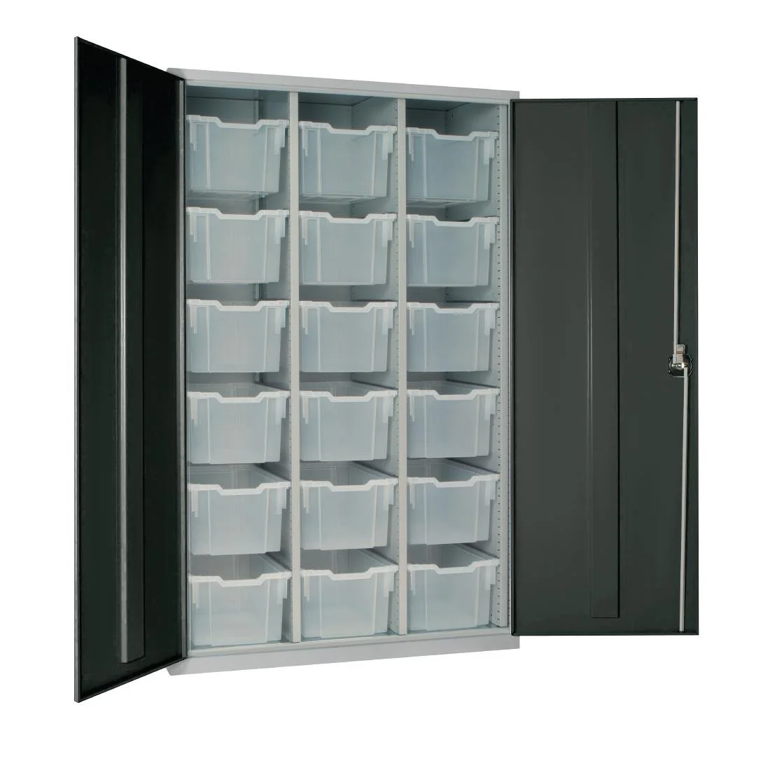 | Name | 18 Tray High-Capacity Storage Cupboard - Dark Grey with Blue Trays, 18 Tray High-Capacity Storage Cupboard - Dark Grey with Red Trays, 18 Tray High-Capacity Storage Cupboard - Dark Grey with Transparent Trays |