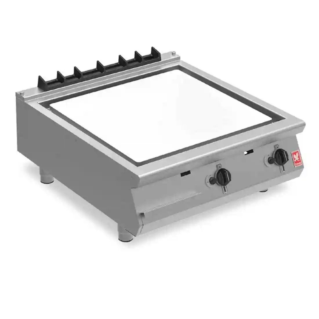With a huge 660x640mm cooking area, you can expertly create delicious pancakes, eggs, steaks and chicken with the propane gas Falcon F900 G9581CR Chromed Griddle. The chrome plate has been designed to be stylish and easy to clean, whilst also emitting very little heat in comparison to traditional griddles. This makes the G9581CR perfect for front of house locations. Control is via the two front-mounted dial thermostats which regulate the two powerful 8.2kW burners. Easy to use, clean and maintain.