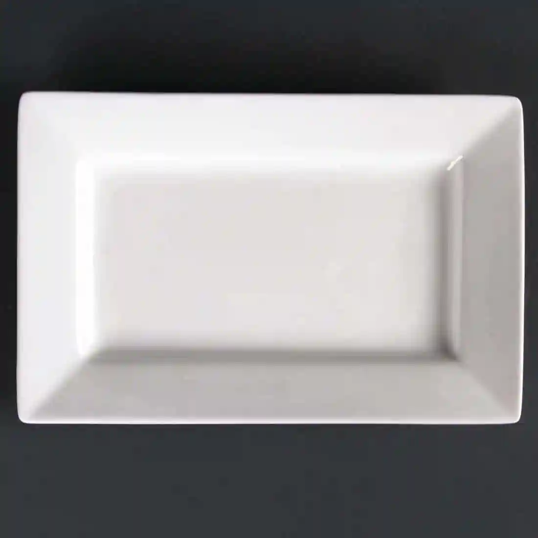 An exquisite range of expertly crafted contemporary wide rim rectangular shaped plates by Olympia Lumina, designed to help create a truly special dining experience in hotels, gastro pubs and restaurants. Each piece of crockery has superior strength and durability of vitrified tableware, with elegant look of fine bone china.