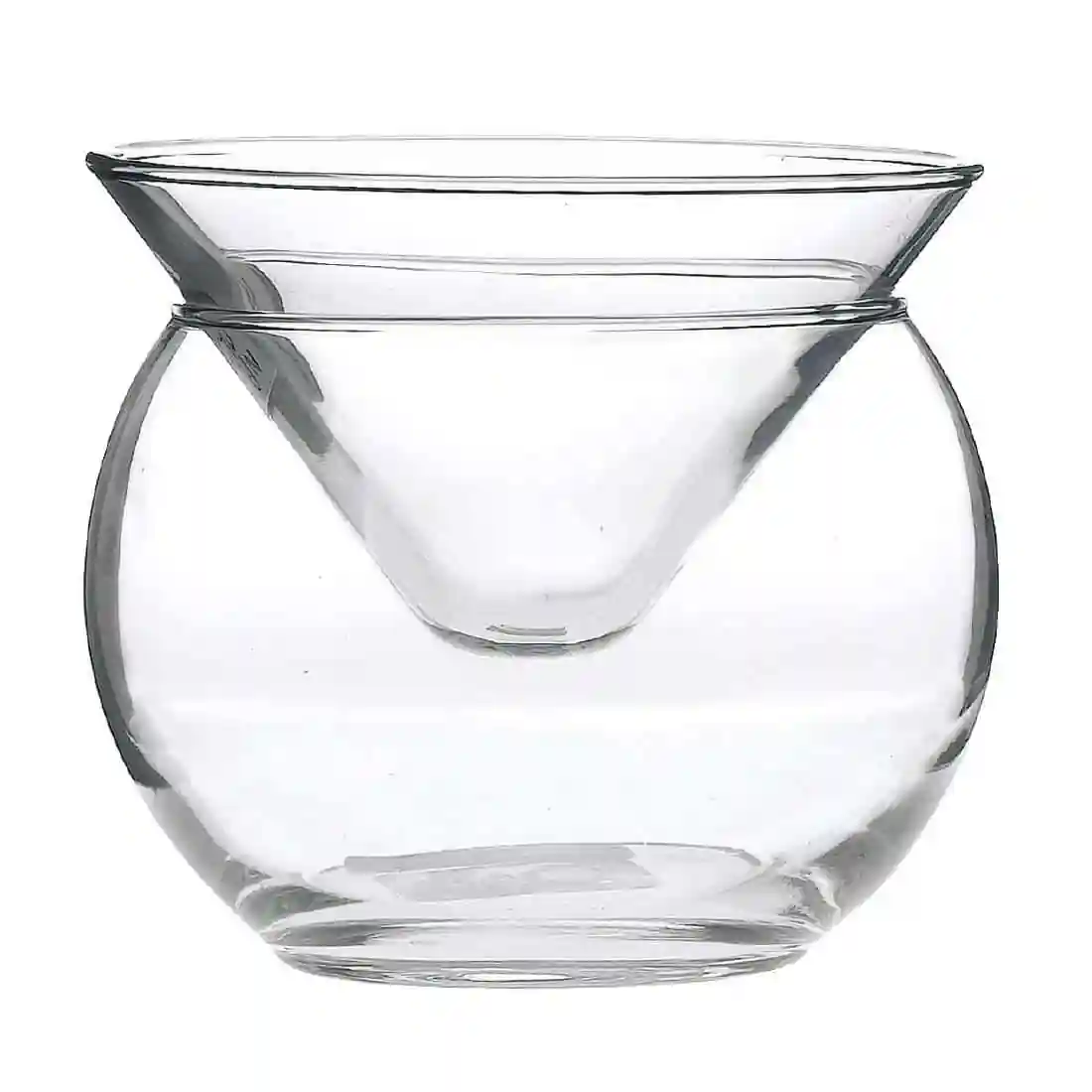 This sleek and stylish 2 piece item consists of a traditional martini shaped top without a stem and a chiller bowl. This unique item is the perfect way to keep your favourite cocktail cool, no matter how hot it gets. Not to forget, the thick glass bowl prevents ice from melting! It’s a versatile performer. When you’re not enjoying a martini, it seamlessly transitions into a stylish vessel for serving desserts or appetizers. Imagine presenting chilled fruit salads or delectable sorbets, in this chic chiller bowl.