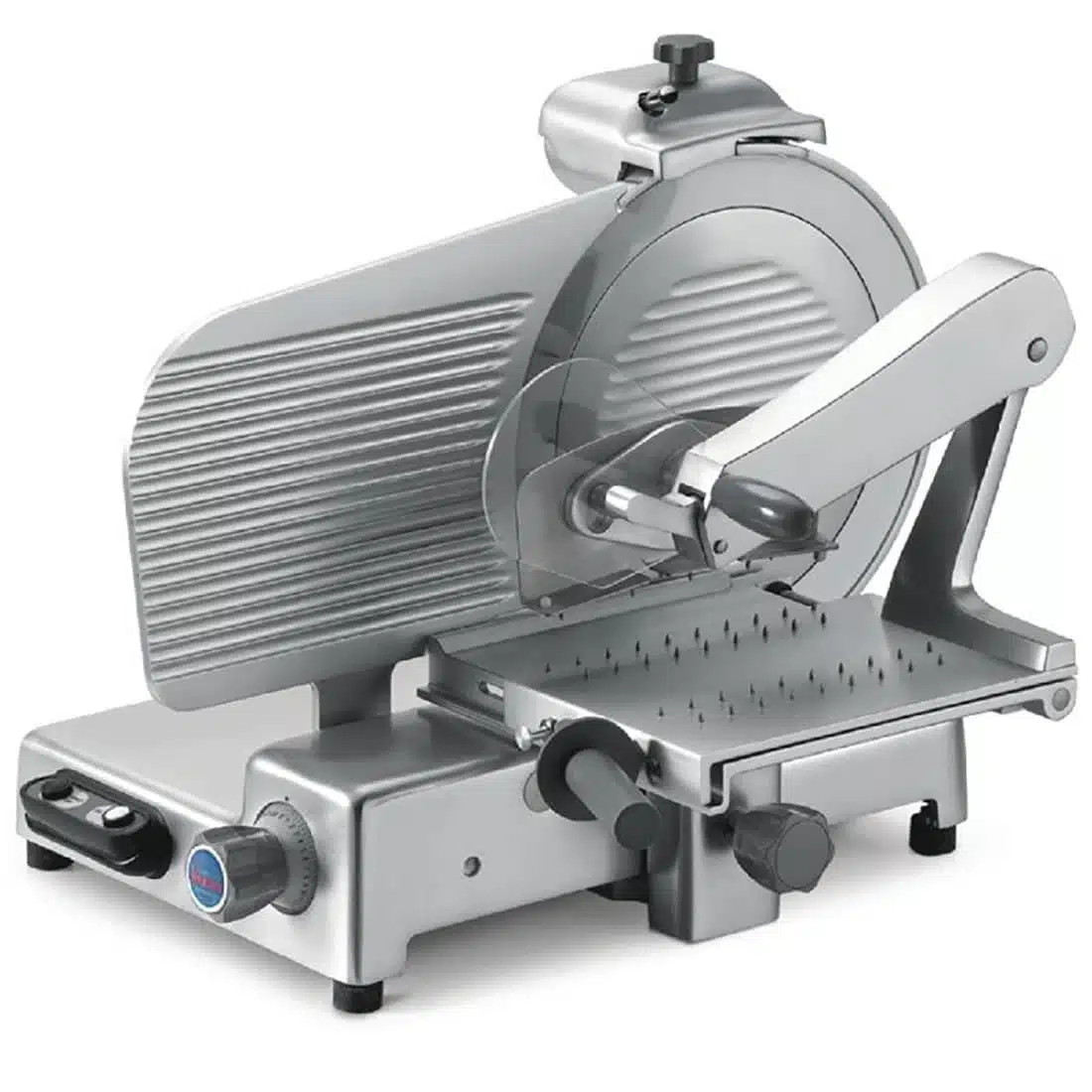 Specifically designed to expertly slice bacon, the Sirman Mantegna 300 BS Meat Slicer makes slicing bacon safe and easy. Equally suitable for slicing other meats such as salami and ham, the Mantegna features a razor-sharp 300mm blade and a powerful 275W motor to ensure clean, fast mess-free slicing. Raised gripper spikes help to keep the meat in position, whilst the 90° cutting angle facilitates uniform slicing every time.
