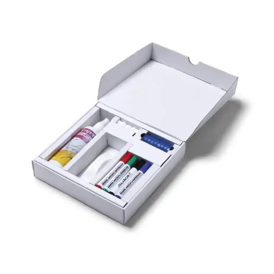 This kit can be used with other dry wipe products including flip charts, noticeboards and a dry erase whiteboard.