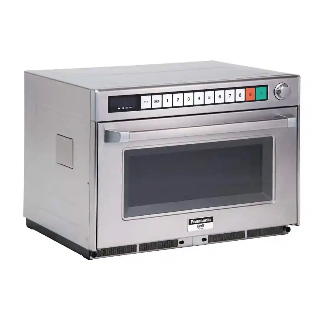 Large heavy duty stainless steel manual microwave oven. The power and large capacity of these ovens can sustain consistently fast throughput.