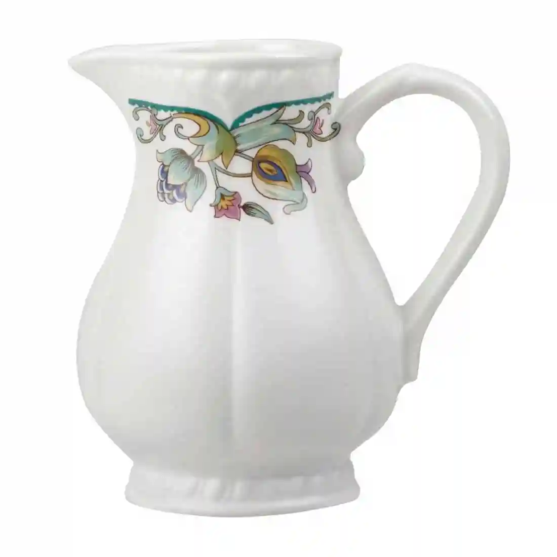 Elegant printed jugs by Churchill with a tropical floral design featuring the delicate embossment of the Buckingham shape, featuring a durable glaze which provides an ultra smooth surface for presentation.