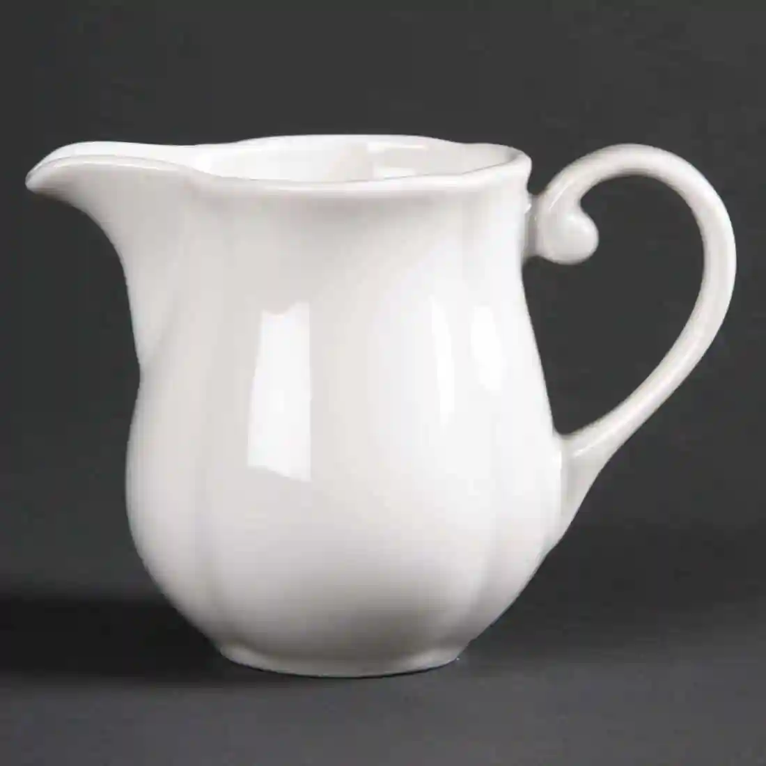 The Olympia Porcelain and Ceramic Cream and Milk Jugs showcase a variety of captivating designs, ranging from classic and vintage-inspired to contemporary and minimalist. Each piece is meticulously crafted to blend beauty and functionality seamlessly, making them an appealing and practical addition to your tableware ensemble.Premium Quality Milk Jug Materials: