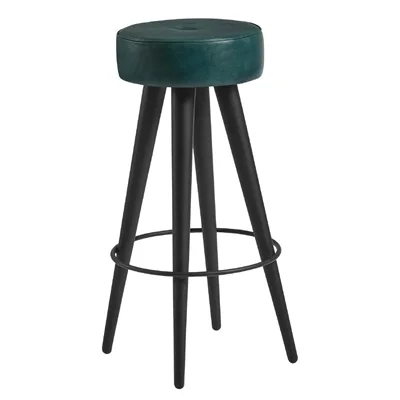 Upholstered with a genuine leather seat pad in vintage blue, the Malibu stool strikes the perfect balance between industrial durability and modern sophistication. Its sturdy black powder-coated steel frame is designed to withstand the rigours of daily use, while conical legs create an elegant, tapered silhouette. An integrated metal ring footrest adds enhanced ergonomic support.