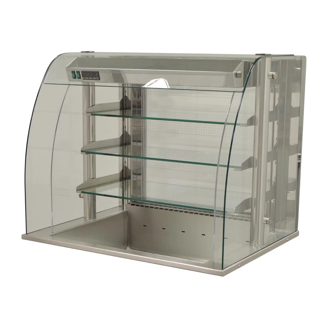 A blown air refrigerated cabinet that maintains the temperature of pre-chilled food held both in the well or on the shelves.
