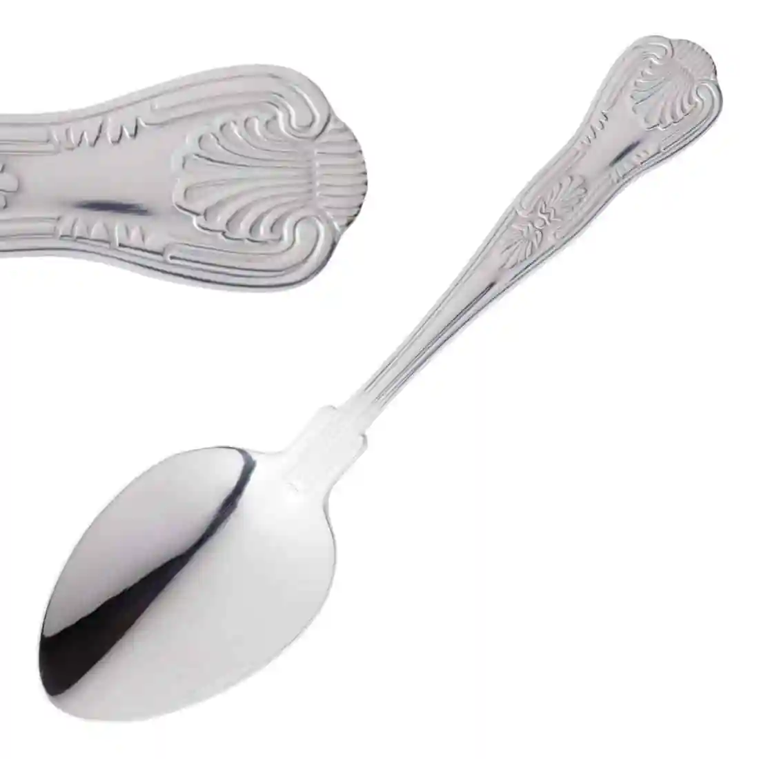 High polish finish 18/0 stainless steel with an elegant regency crest design on the handle