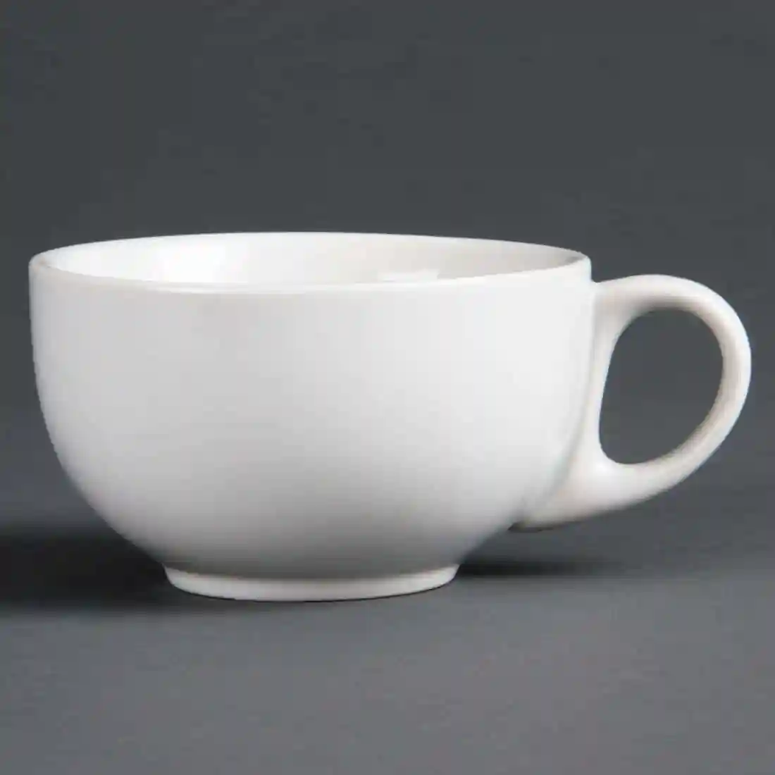 Our great value pure white porcelain cappuccino cups by Olympia are fully vitrified for heat and shock resistance, the ideal crockery for hotels which want simplicity.