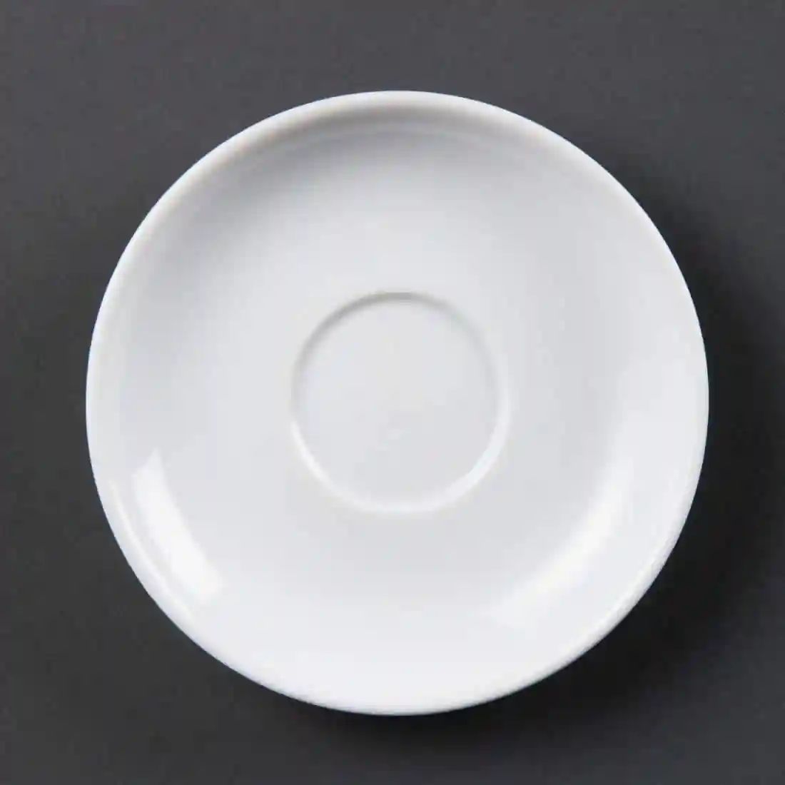 Our great value pure white porcelain espresso saucers by Olympia are fully vitrified for heat and shock resistance, the ideal crockery for hotels which want simplicity.