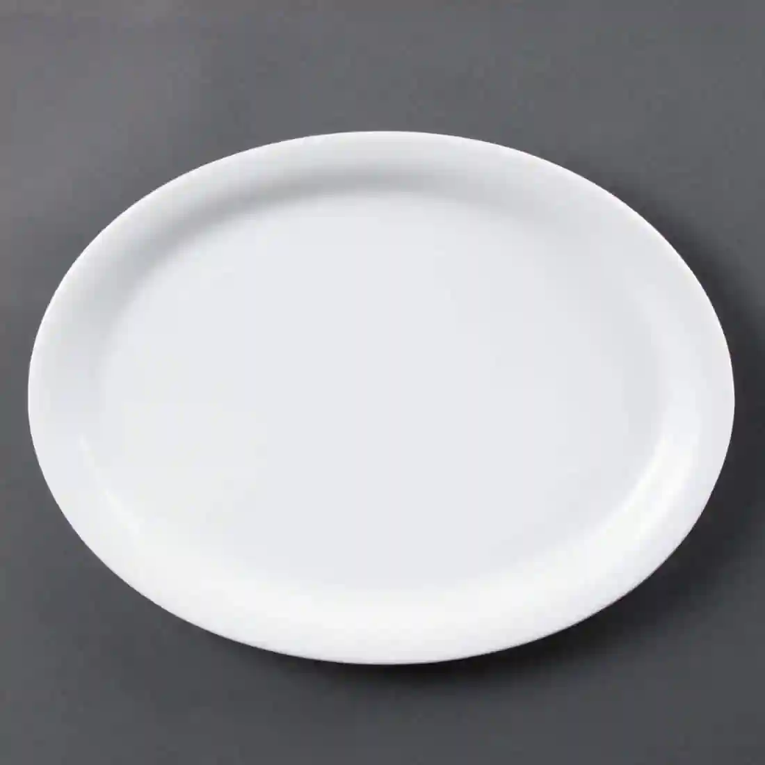 Our great value pure white oval shaped platters by Olympia are fully vitrified for heat and shock resistance, the ideal crockery for hotels which want simplicity.