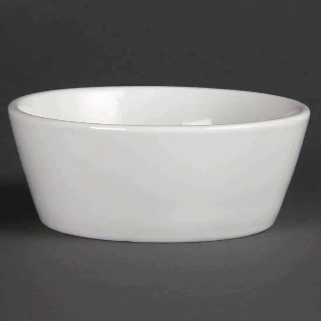 An appealing, pure white 4.75″ sloping edge bowl from Olympia, designed to provide a great value and hardwearing porcelain crockery solution for busy hotels, canteens, casual dining restaurants and cafes. Strengthened rolled edges ensure the bowl is chip resistant and the fully vitrified body gives great glaze durability, making it ideal to withstand the rigours of the professional catering environment. The bowl is stackable, helping maximise storage space, and oven, microwave, dishwasher and freezer proof.