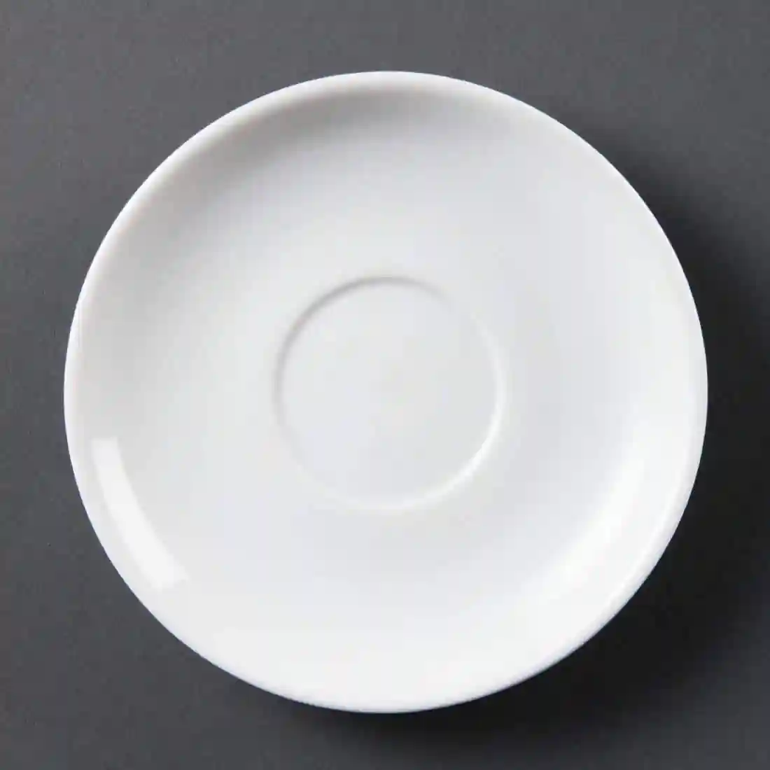 Our great value pure white porcelain stackable saucers by Olympia are fully vitrified for heat and shock resistance, the ideal crockery for hotels which want simplicity.