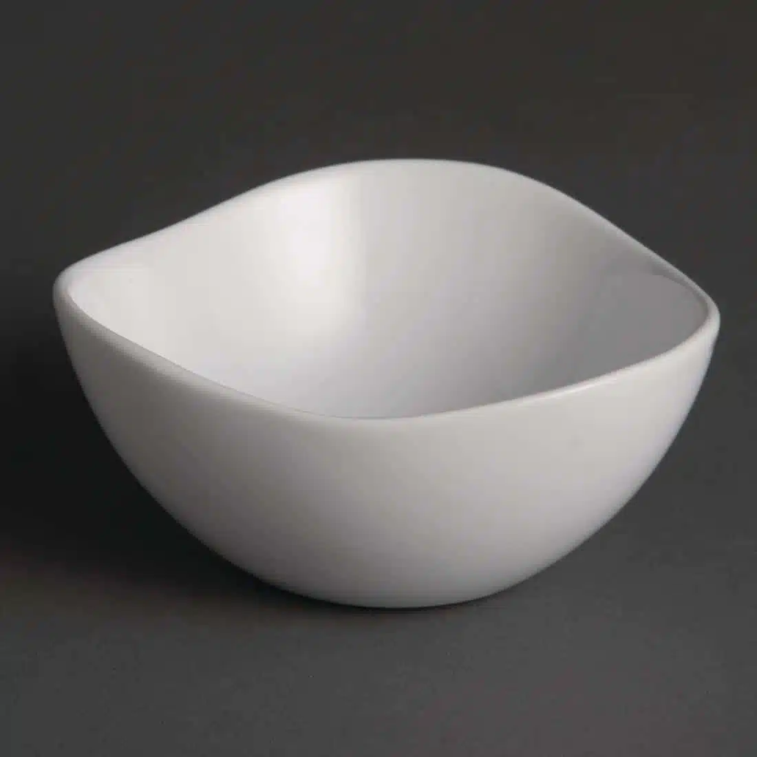 An appealing, pure white 4″ wavy bowl from Olympia, designed to provide a great value and hardwearing porcelain crockery solution for busy hotels, canteens, casual dining restaurants and cafes. Strengthened rolled edges ensure the bowl is chip resistant and the fully vitrified body gives great glaze durability, making it ideal to withstand the rigours of the professional catering environment. The bowl is stackable, helping maximise storage space, and oven, microwave, dishwasher and freezer proof.