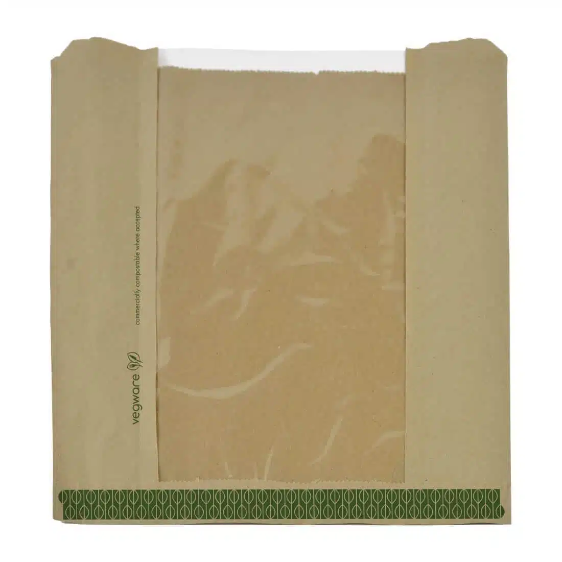 Vegware Kraft Large Sandwich/Cookie Bag with PLA Window 10″x10″ (Pack of 1000) - Paper Takeaway Containers