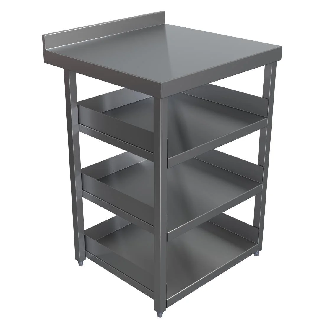 With three separate, easily removable shelves, the shelving station is highly flexible and easy to clean. On top, the main worktop area features a handy rear upstand to prevent items falling down the back. The shelves also feature upstands to the sides to keep items in place. And as the whole unit is made from stainless steel, it’s highly durable too – an essential addition to your modular bar area.