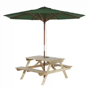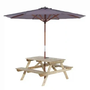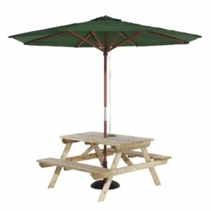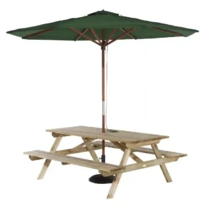 Table: 700(H)x1800(L)x1500(D)mm. Parasol: 2430(H)x2700(Ø)mm