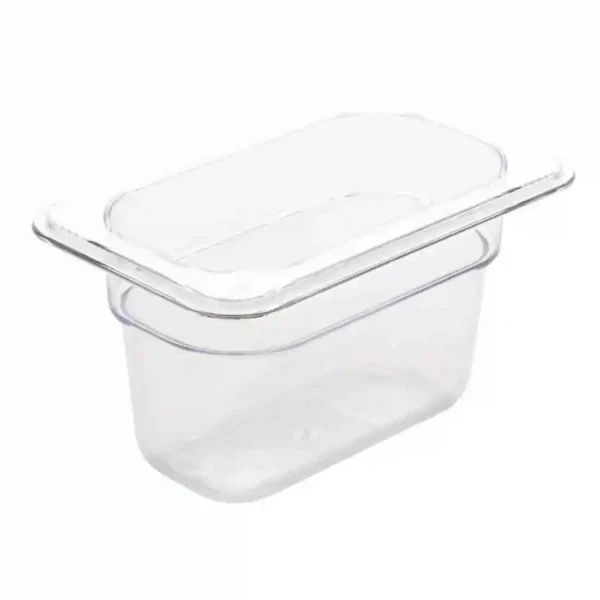 GN 1/9. Ninth Size. Clear. 100mm depth. Capacity: 870ml