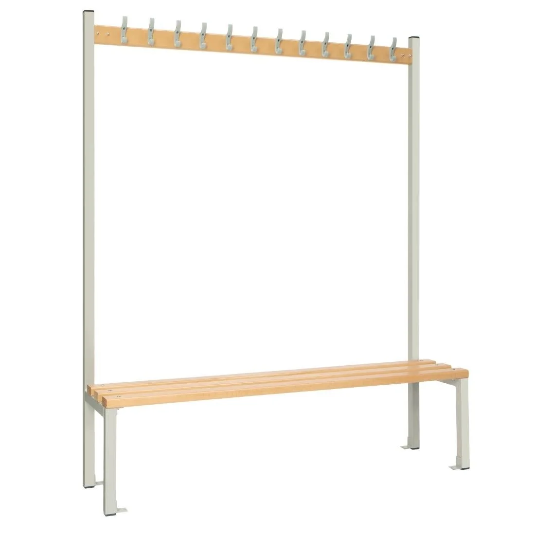 This single-sided seating island is an ideal choice for various settings such as schools, gyms and staff changing rooms. Constructed with durability in mind, its robust steel framework is powder-coated in an attractive grey shade, ensuring both strength and a visually appealing design. The slatted seat, crafted from hardwearing beech wood, offers comfort and support, […]