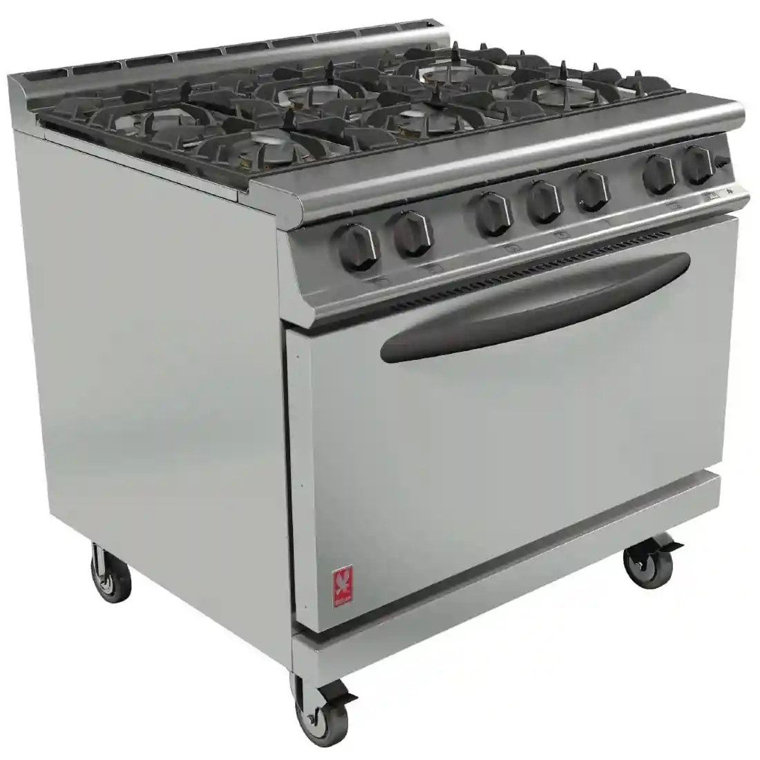 An impressive gas range with six powerful open top burners which is sure to becom the cornerstone of your kitchen. Burners are energy efficient with a quick heat up and reduced waiting time. The 2/1 Gastronorm compatible oven has a drop down door, which provides a convenient resting area for trays and containers en route to serving, and an easy to clean removable top. Low profile, full width door handle helps reduce intrusion into work space.