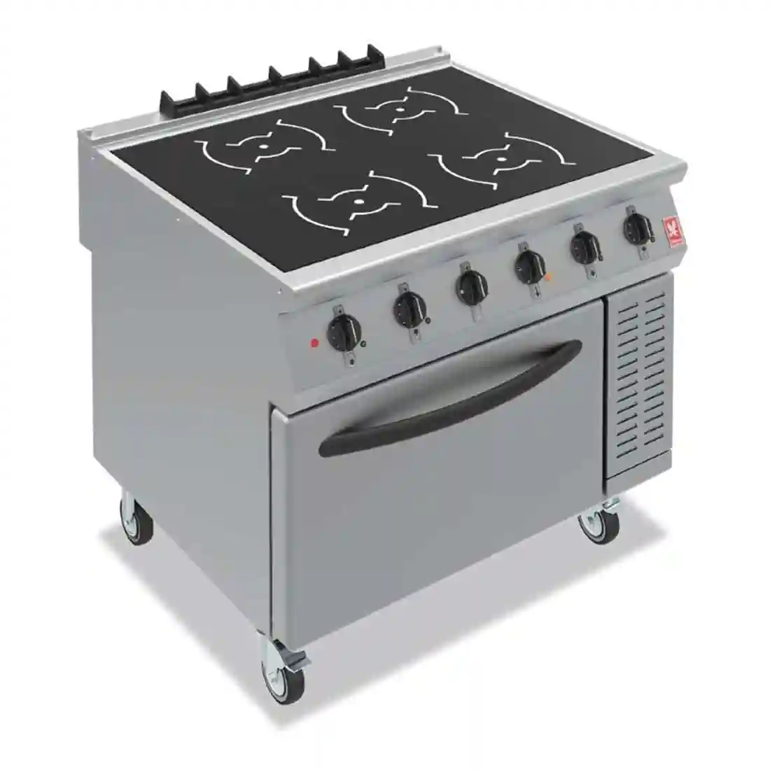 Highly powerful yet highly efficient, the Falcon F900 Induction Range Oven I91105 offers impressive commercial performance ideal for restaurants, canteens, takeaways and more. Delivering remarkable energy savings in comparison to standard electric or gas versions, the four powerful 5kW induction heat zones bring precise, controllable cooking to your pans. The large 2/1 gastronorm compatible oven features five shelf positions and a metal-to-metal door seal, ensuring heat efficiently retained where it’s required – the oven chamber.