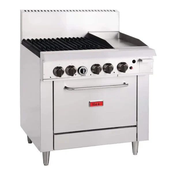 Freestanding gas oven ranges with 4 open burners with flame failure protection. Heavy duty stainless steel construction with stainless steel splashback. Drop down door.