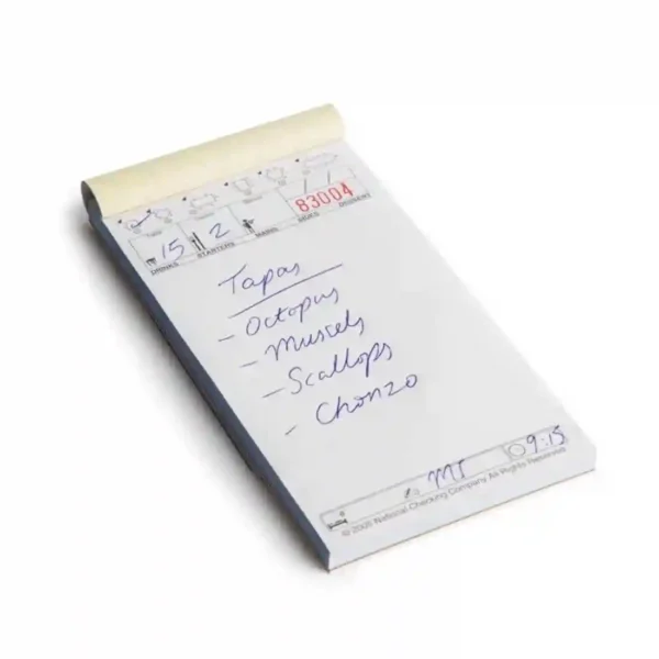 A waiting pad for taking food and drink orders with table diagrams and seating plans for accurate service. 50 tickets per pad. A clean alternative to carbon.