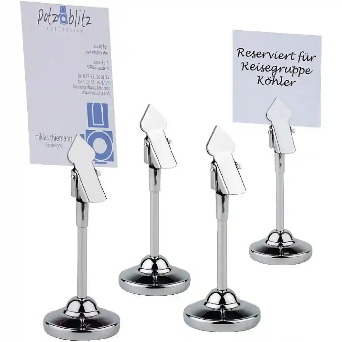 Stainless steel stands, supplied with clips and 20 plain white cards.