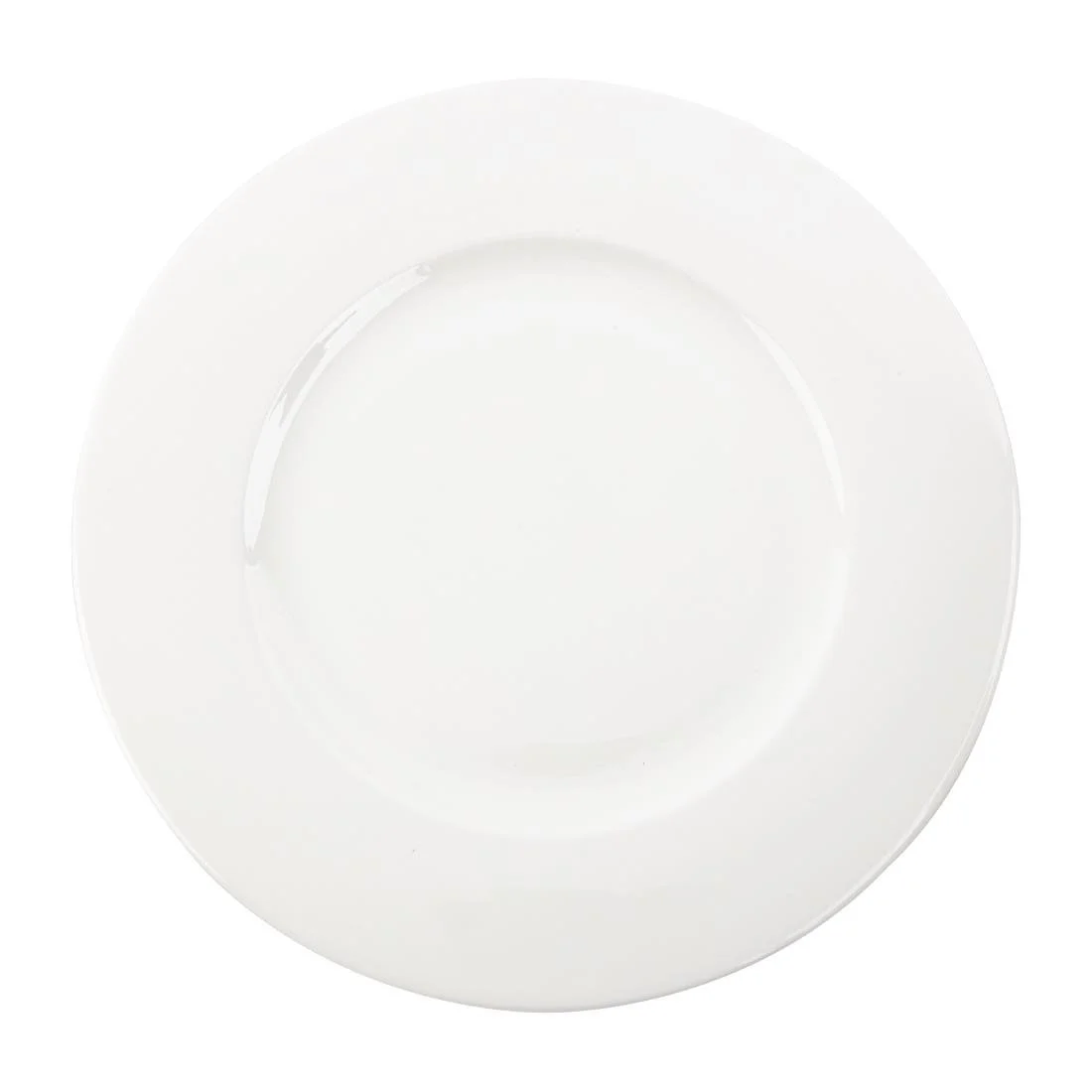 Royal Bone Ascot range is perfect for hotel, restaurant and banqueting dining. The feature and benefit of Bone China is the product is lightweight, so is easier for waiter service to carry a few plates at once. The body of the plate is more durable than porcelain or stoneware. The finish is sophisticated and apt for a fine dining environment. The wide rimmed plates have a very flat profile, making them look far more contemporary than the classic wide rimmed plates in the Ascot range.