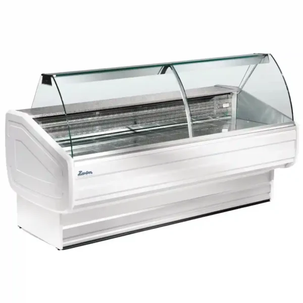 This Zoin Melody Deli Serve Over Counter Chiller is suitable for the display of cooked meats, delicatessen products and dairy products. Ambient top shelf for display of other products at eye-level (snacks, drinks…). Lower refrigerated storage. Digital temperature display. Front glass hinges forward for easy cleaning.