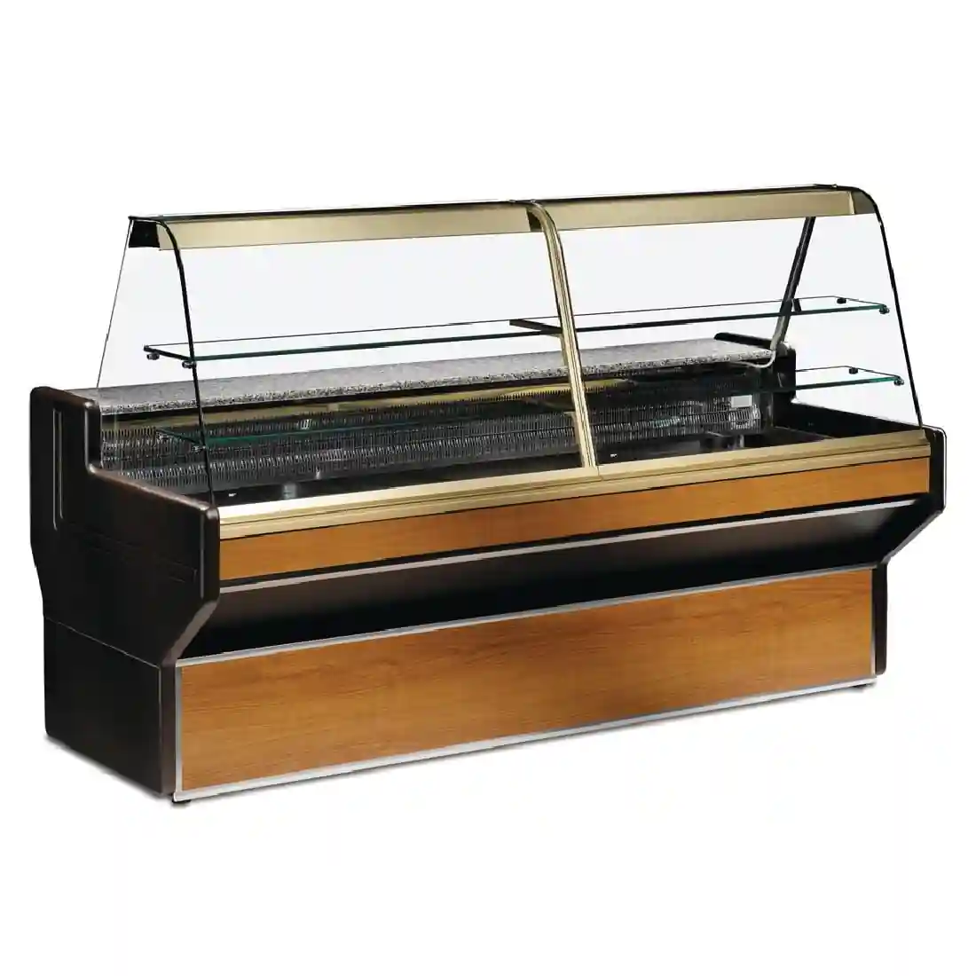 Display cabinets ideal for selling pastries and other food items. Great for smaller establishments. Curved and tempered front glass and stainless steel display surface.