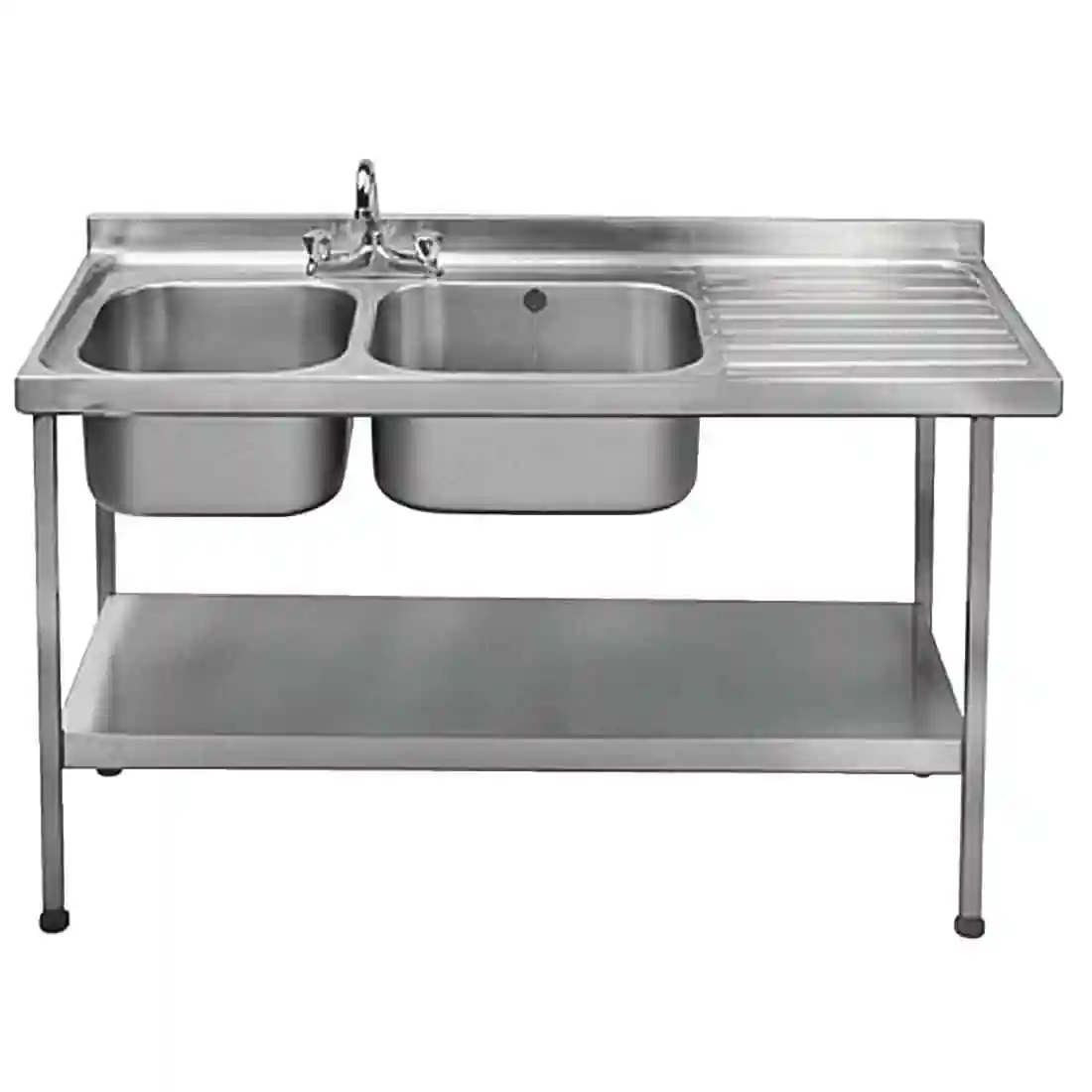 Fully welded, pressed stainless steel construction with inclined drainers for easy cleaning. Complete with stand, shelf, taps and waste.