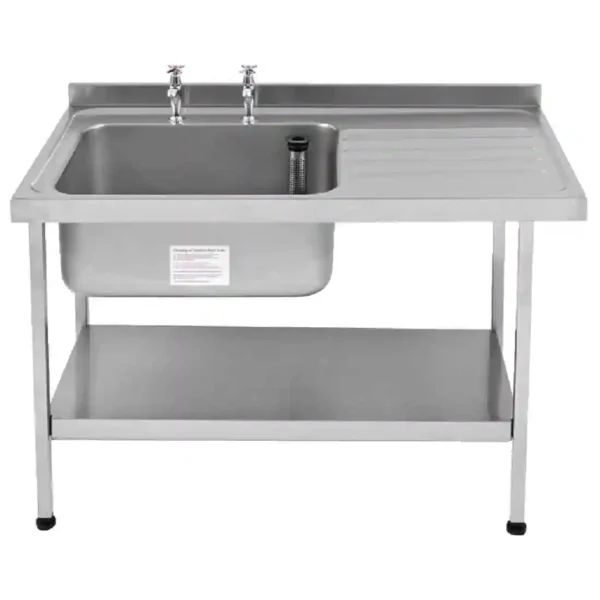 Fully welded, pressed stainless steel construction with inclined drainers for easy cleaning. Complete with stand, shelf, taps and waste. Standpipes included.