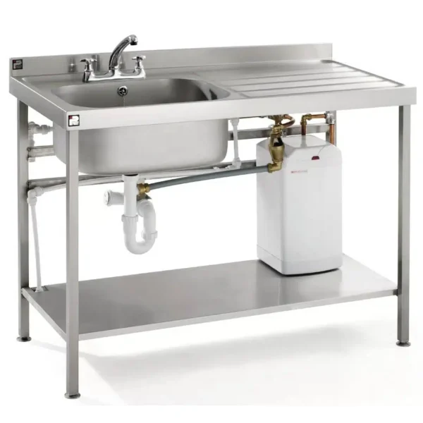 Clean your kitchen with ease thanks to this 1200mm sink unit with a right hand drainer from Parry. Including an integrated water heater, providing hot sinks of water to businesses with limited hot water or challenging installation locations.