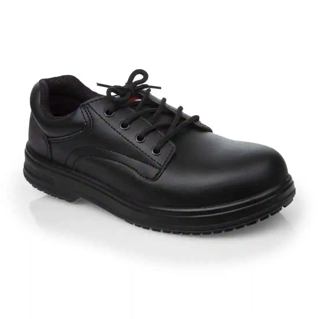 Designed for everyday professional use, the Slipbuster basic safety shoes are a must-have for those in food service or hospitality roles. Featuring a steel toe cap, these safety shoes aid in protecting staff from sharp or heavy kitchen equipment – helping to promote health and safety and prevent workplace injuries.