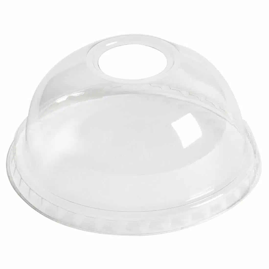 This clear dome lid features a hole to fit a straw, ideal for smoothies, juices, slushed drinks and health tonics. Fits clear PET smoothie and juice cups (FT996). Present your smoothies in the best possible light in smoothie cups with these clear domed lids and enhance the appearance of the product.