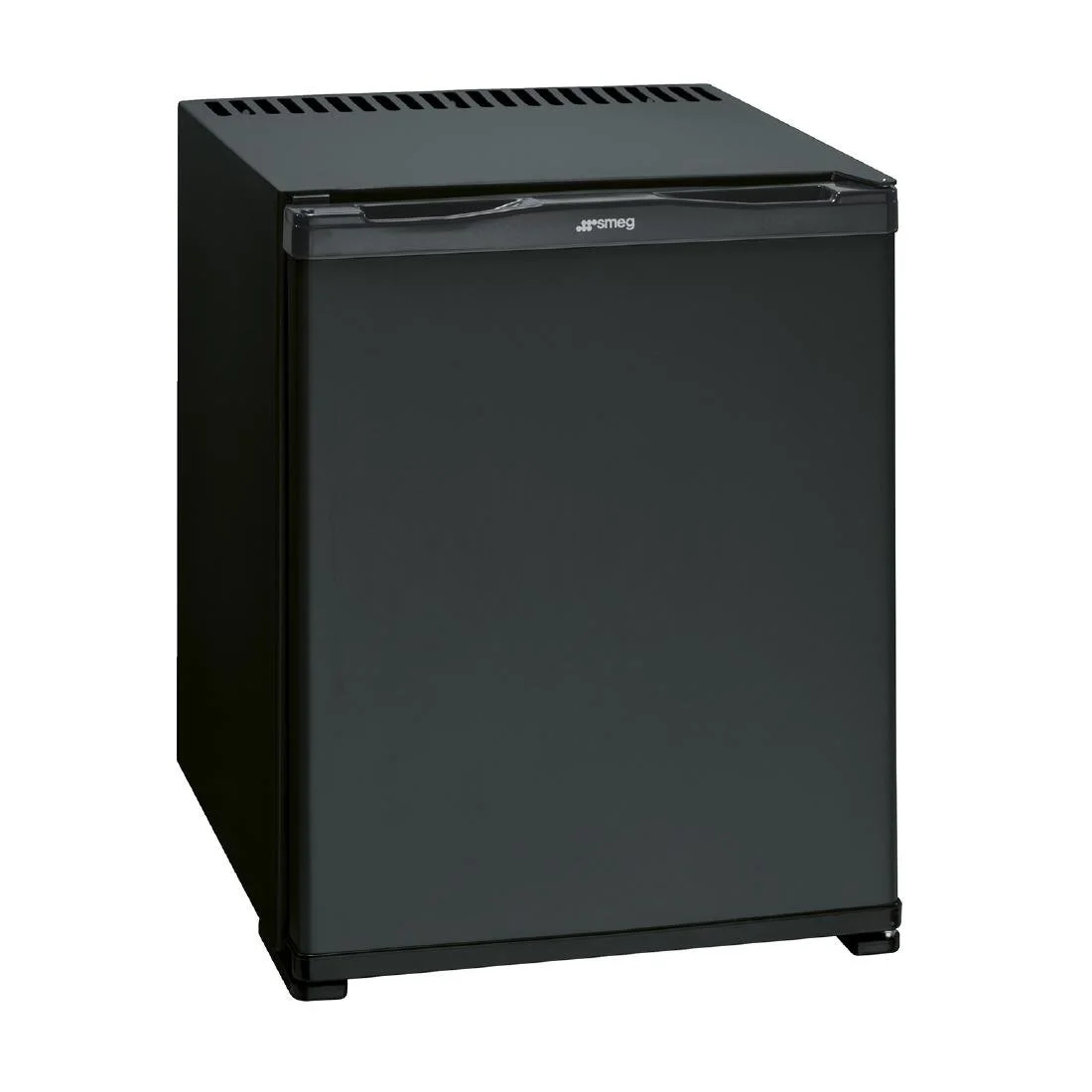 Smeg freestanding minibar, ideal for various applications such as hotel/guest rooms, offices and domestic use. Using thermo-electric refrigeration for quiet and efficient operation. Energy consumption is 131KWh/year. With an adjustable door shelf, 1 bottle shelf, 1 adjustable glass shelf and 30 litre capacity there is ample room for drinks and snack, with an internal LED light to give a clear view. The door is reversible for ease of installation and the mini bar can be used freestanding or integrated into a cupboard.