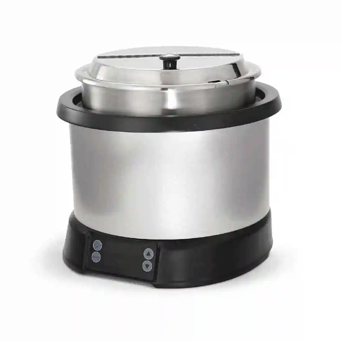 The Vollrath Mirage induction soup kettle is a safer and more efficient solution for heating and serving food. Using induction technology, food is heated evenly without requiring water, which is usually needed on traditional soup kettles. Using only 800 watts, the unit efficiently raises the temperature of the contents from a chilled state to a safe temperature in less than 90 minutes – and then retains a safe holding temperature consuming only 100 watts. The user-friendly LED control display allows for three programmes to be stored and internal sensors alert users when the contents need to be stirred – preserving the food quality and reducing waste.