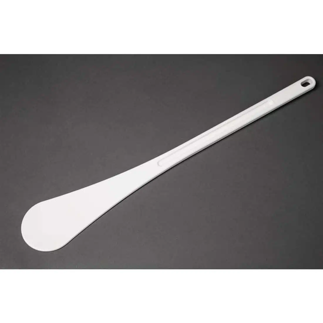Keep your cookware in excellent condition with the Schneider 500mm spatula. Made from polyamide and nylon, the spatula is non-abrasive, preventing your non-stick pots, pans and tins from scratching to keep them working effectively. Heat resistant up to 220°C, this plastic spatula is safe for use when cooking and preparing hot food, making it an essential tool for any commercial kitchen. Featuring a long handle with a hole in the end, the utensil can be conveniently stored and accessed with ease during busy service periods. The spatula is also incredibly easy-to-clean, requiring minimal effort to keep sanitary and safe for use.