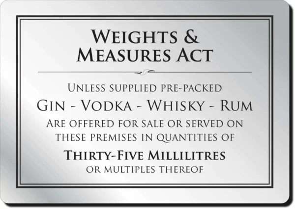 Weight & Measures Act 35ml Bar Sign – Silver - Bar Signs & Restaurant Signs