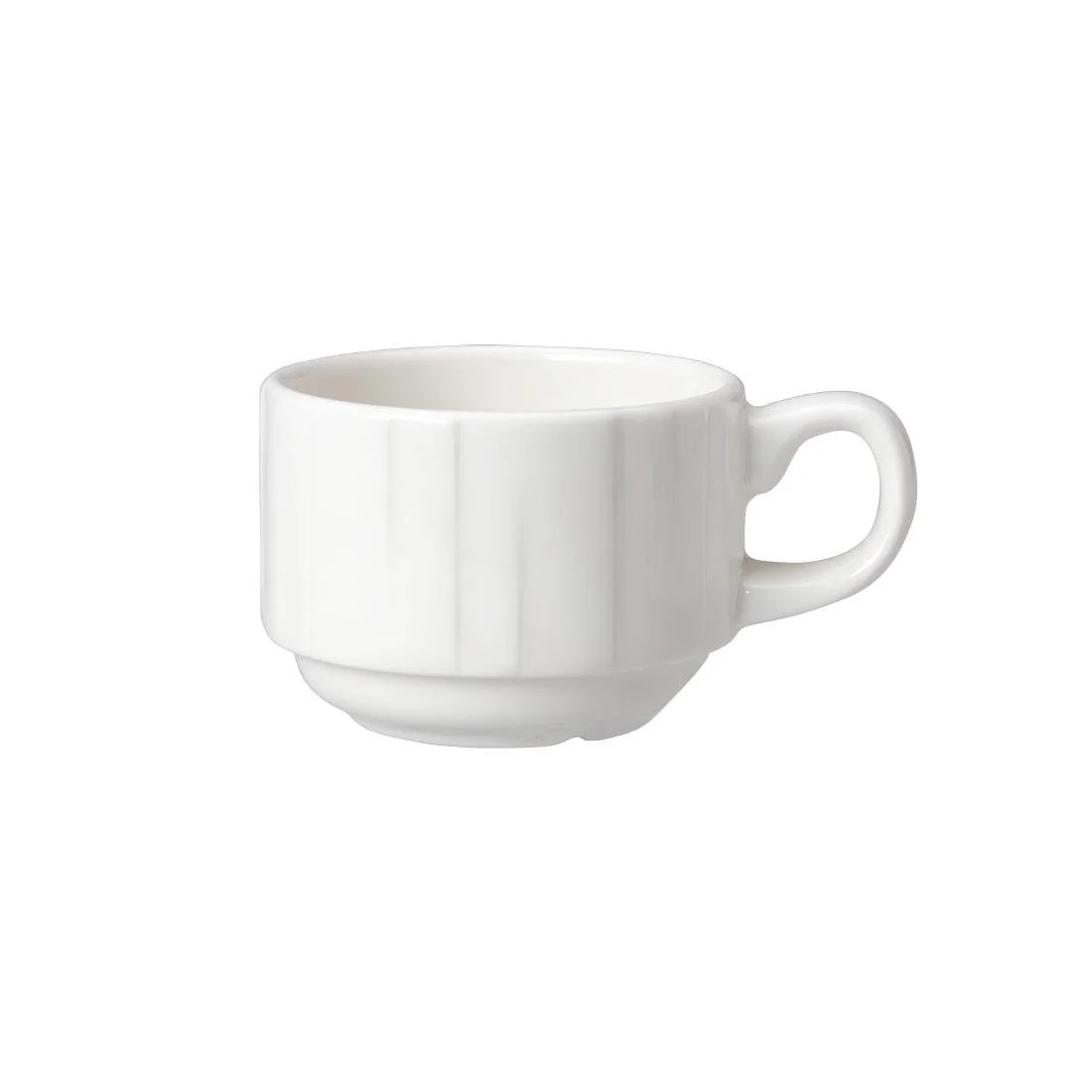 Finished with a durable, transparent glaze, these Alina stacking cups are built to perform beautifully, service after service. Fully stackable for space-saving storage, they boast a fully glazed base that helps prevent chipping and wear. The cups also excel under pressure, resisting temperature fluctuations up to 350°F and are microwave, freezer and dishwasher safe for no-worry convenience.